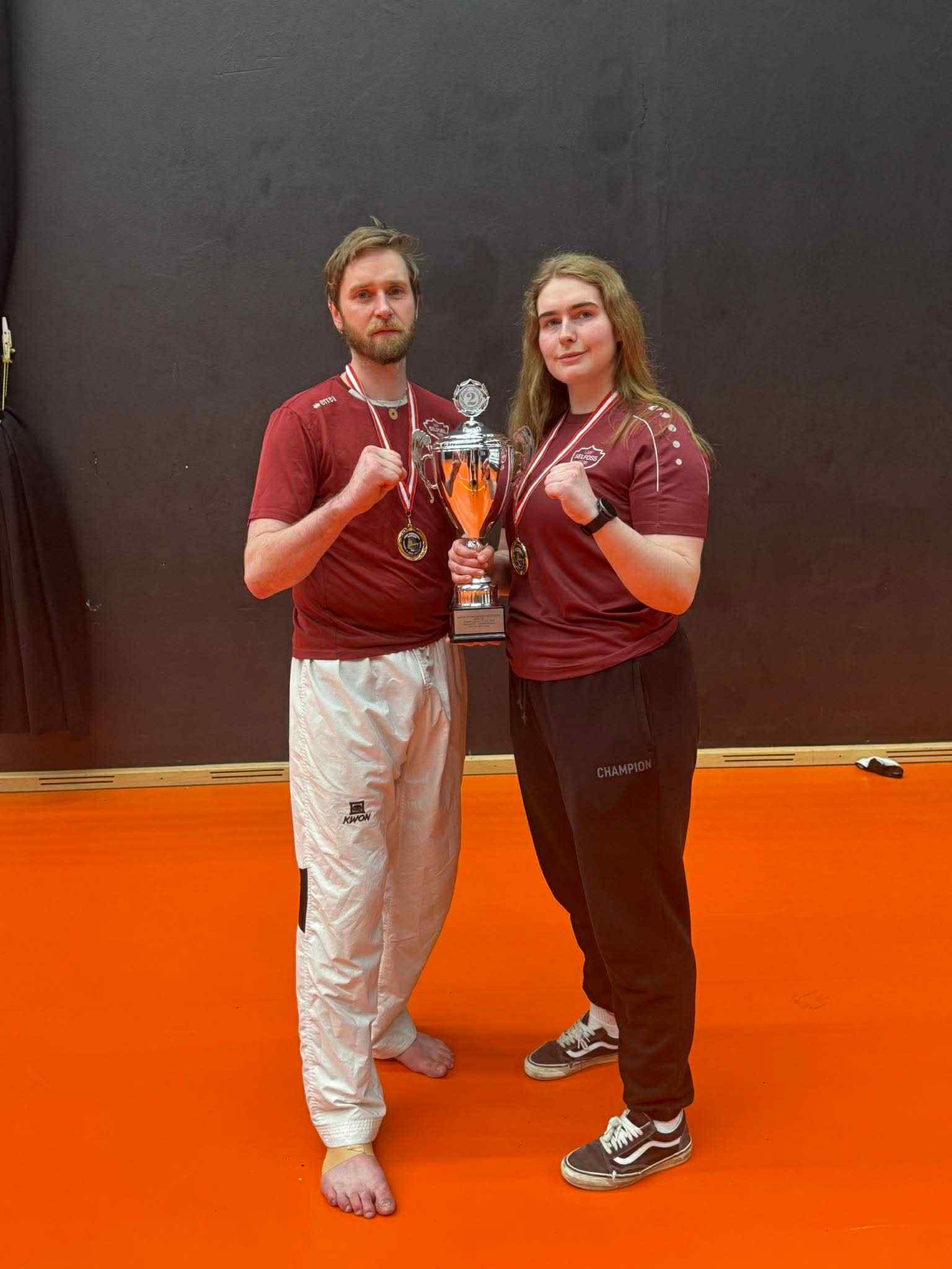 Í bardaga urðu Norðurlandameistarar þau Dagný María Pétursdóttir Splidt  í Senior +73 female, Daníel Jens Pétursson í  Veteran +87 male (bróðir Dagnýjar) og Viktor Berg Stefánsson svo í Cadet -37 male.